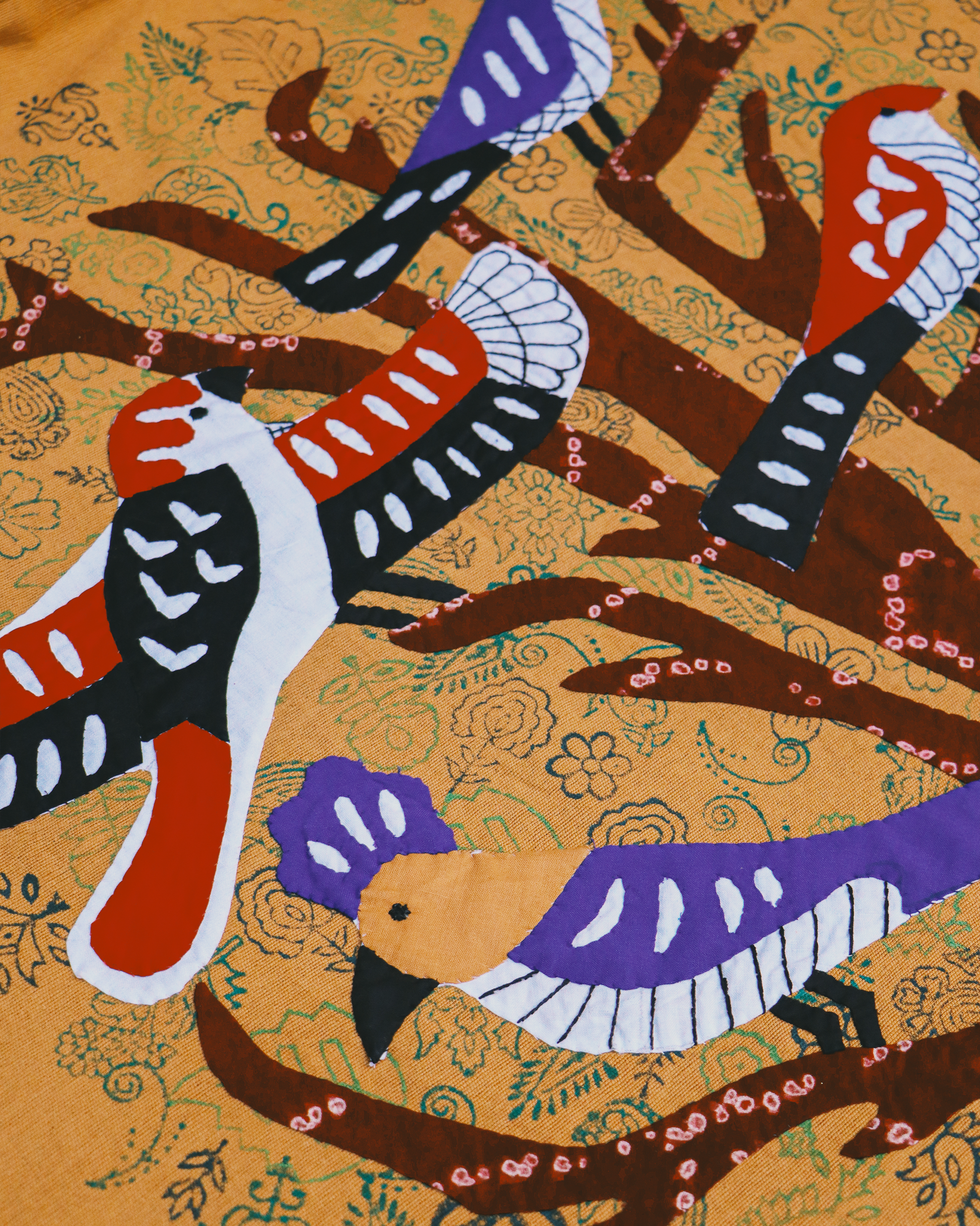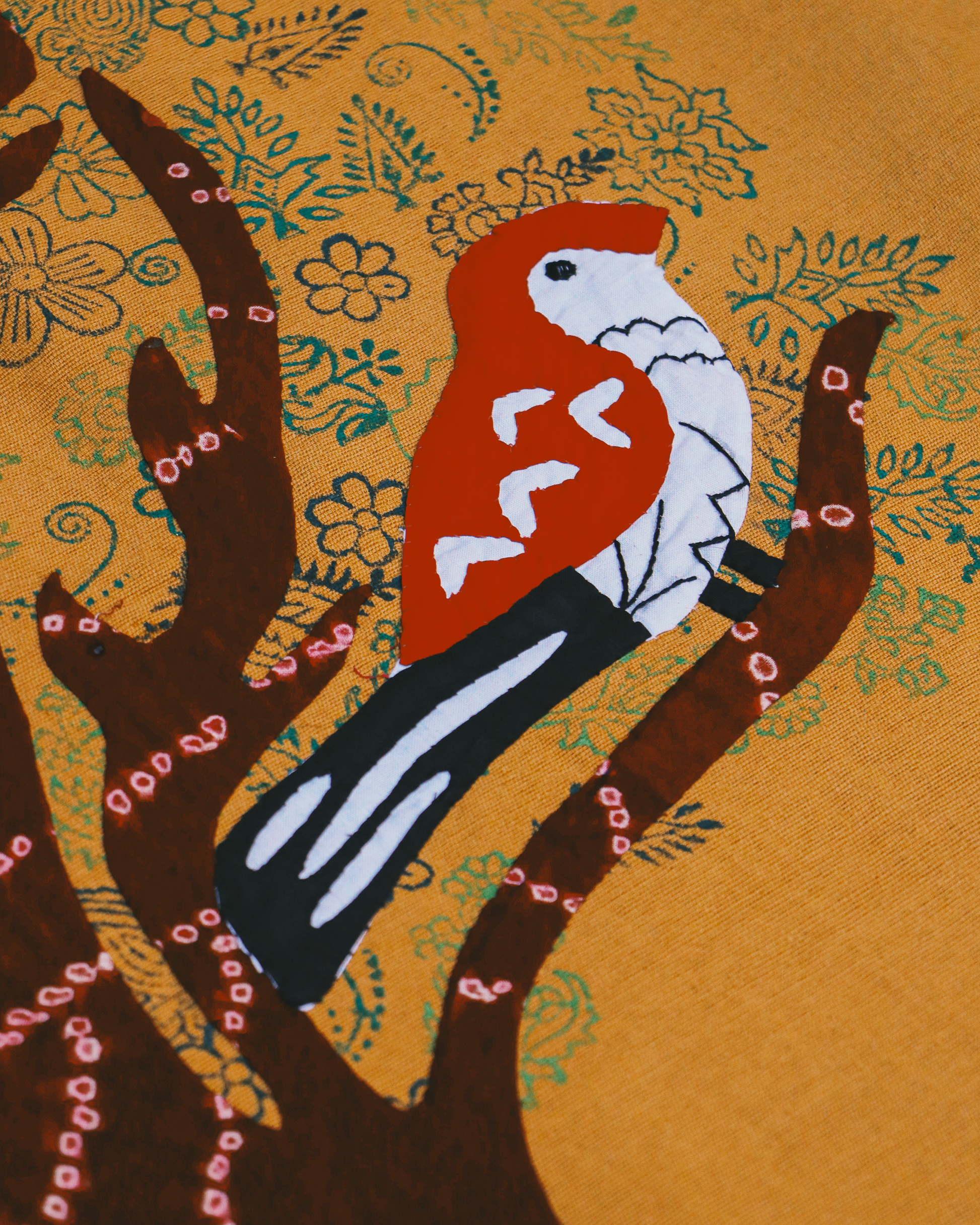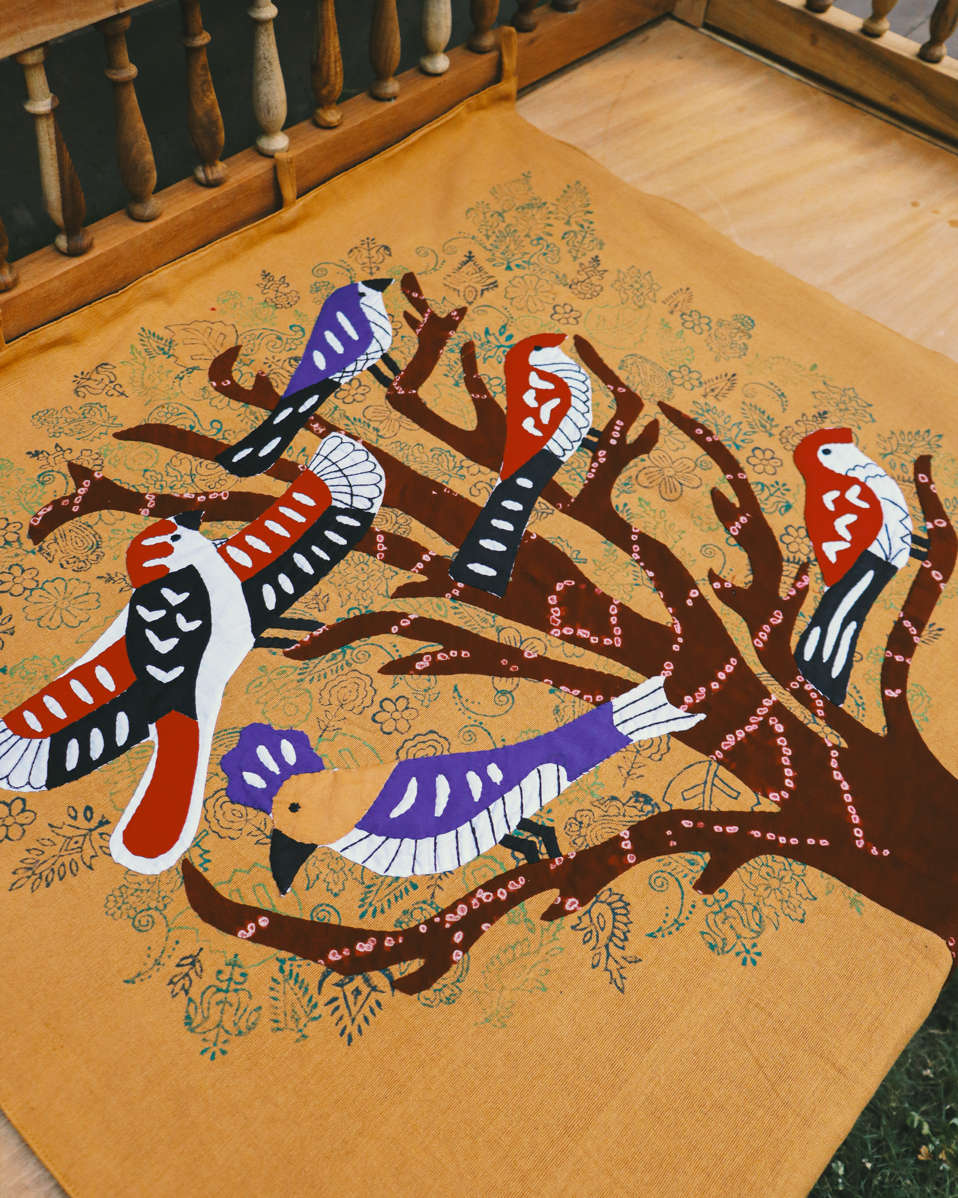 Handmade in the Tharpakur bought to you by Aman Kay Rang. The vibrant bird motifs echo the richness and warmth of Sindhi heritage craft.