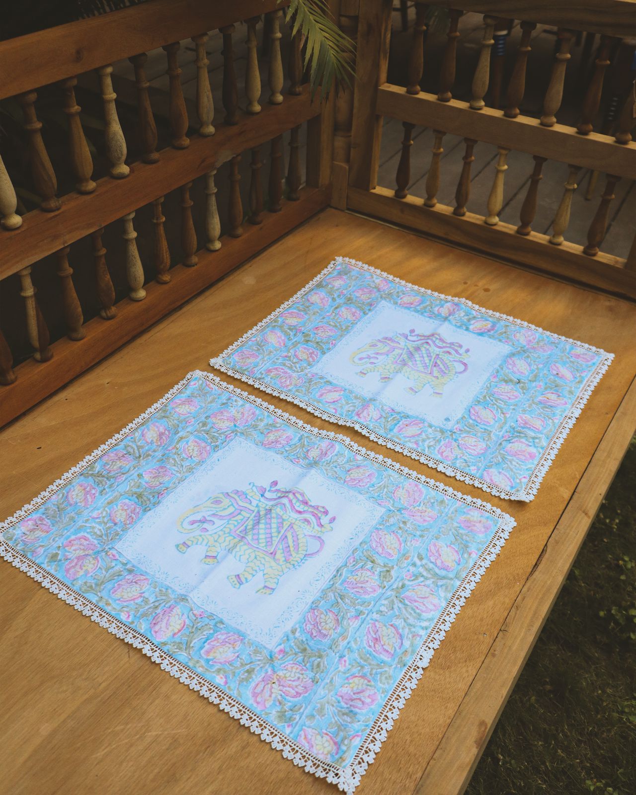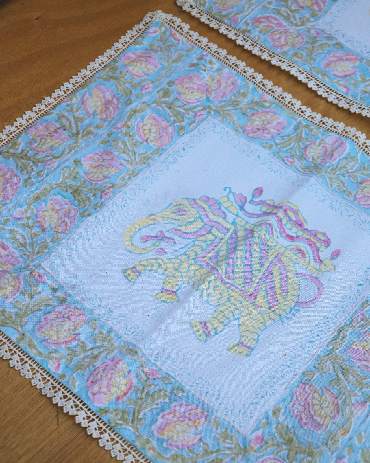 Handprinted especially for us by master craftsmen Asif Chaudhry at Golmohar. These mats evoke monsoon winds, old havelis and turmeric chai.
