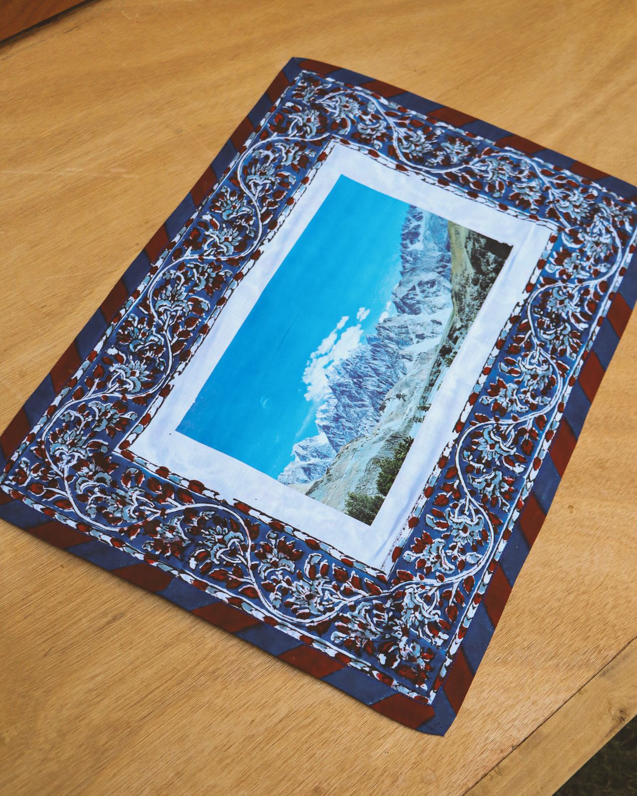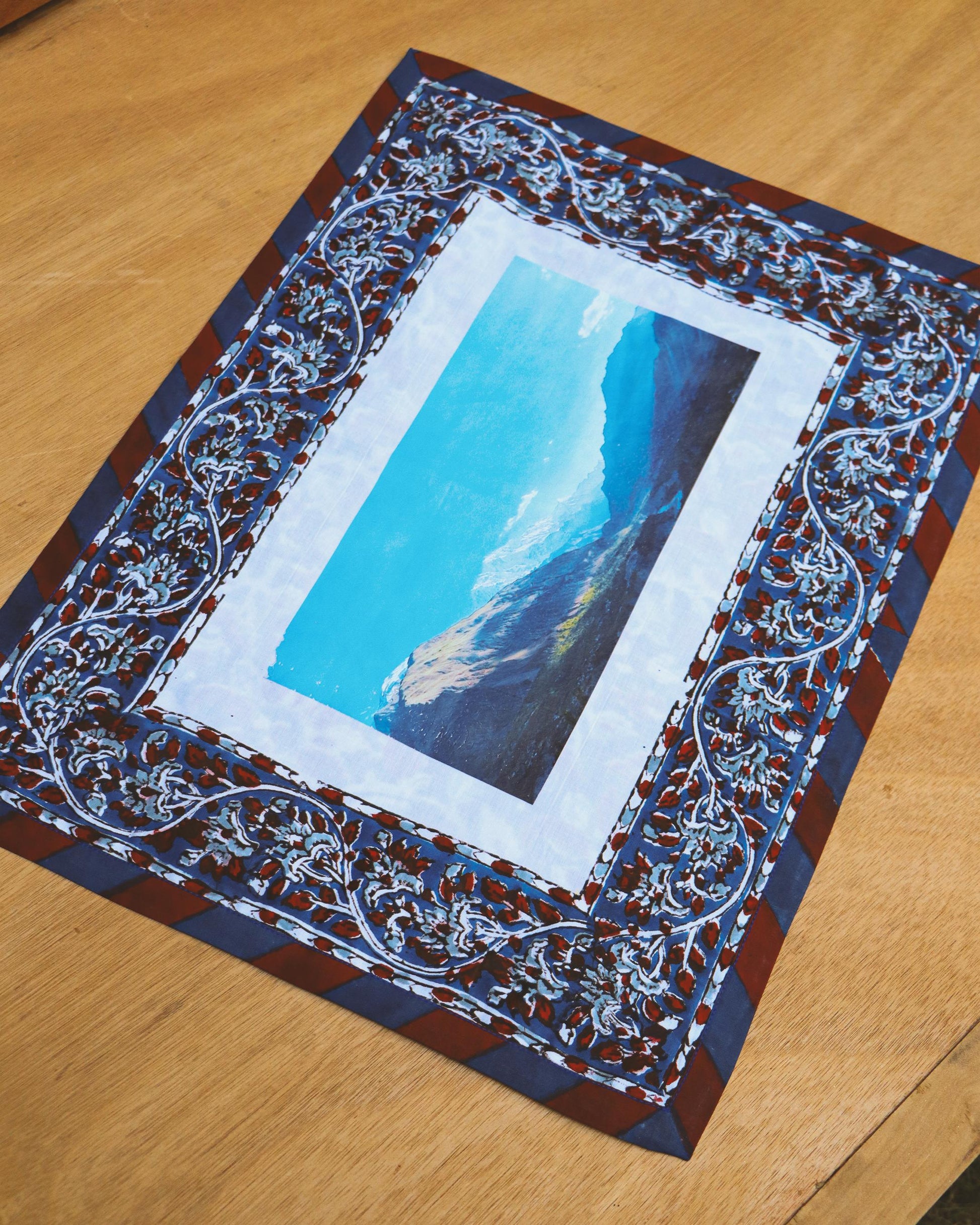 This tableware set is a striking fusion of craft and image—Asif Chaudry’s mastery of block printing meets Atif Ayub Abbasi’s breathtaking photography of Skardu. The result: a functional work of art that brings storytelling to your table.