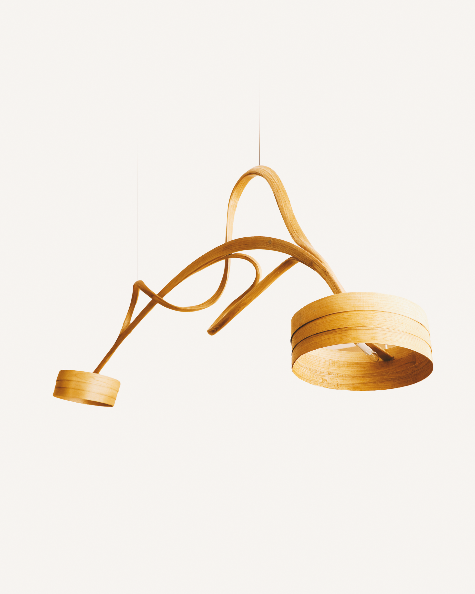 Make a bold statement with the Raka Chandelier, an artisanal ceiling light crafted from bentwood strips for a sculptural, modern aesthetic. Its fluid, ribbon-like design casts dynamic shadows while radiating warm, diffused light—ideal for dining areas, living rooms, or creative spaces. A perfect fusion of organic form and contemporary lighting, this chandelier is a testament to elegant minimalism and eco-conscious craftsmanship.