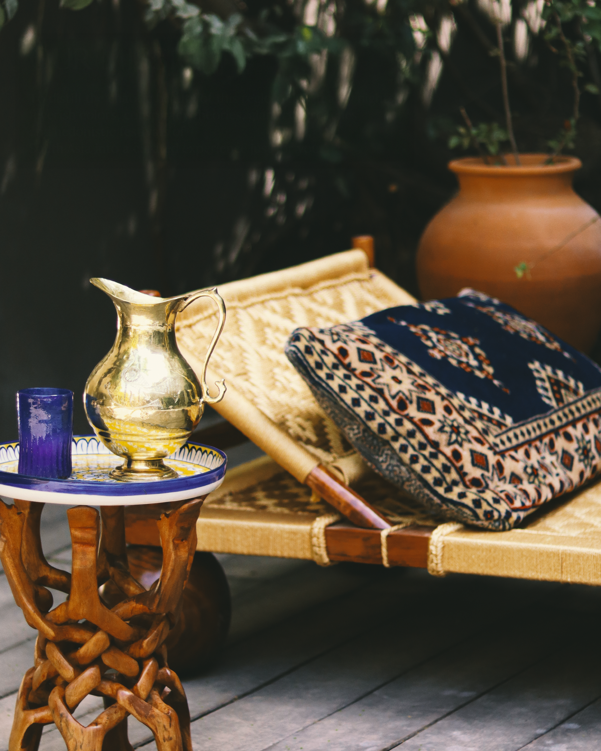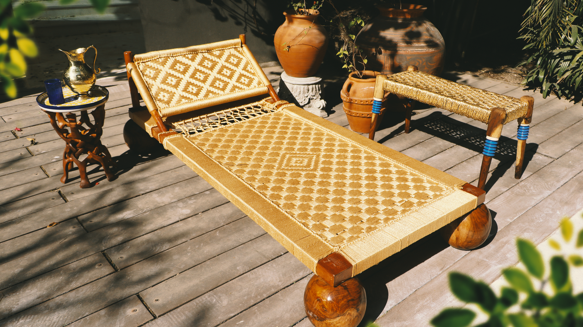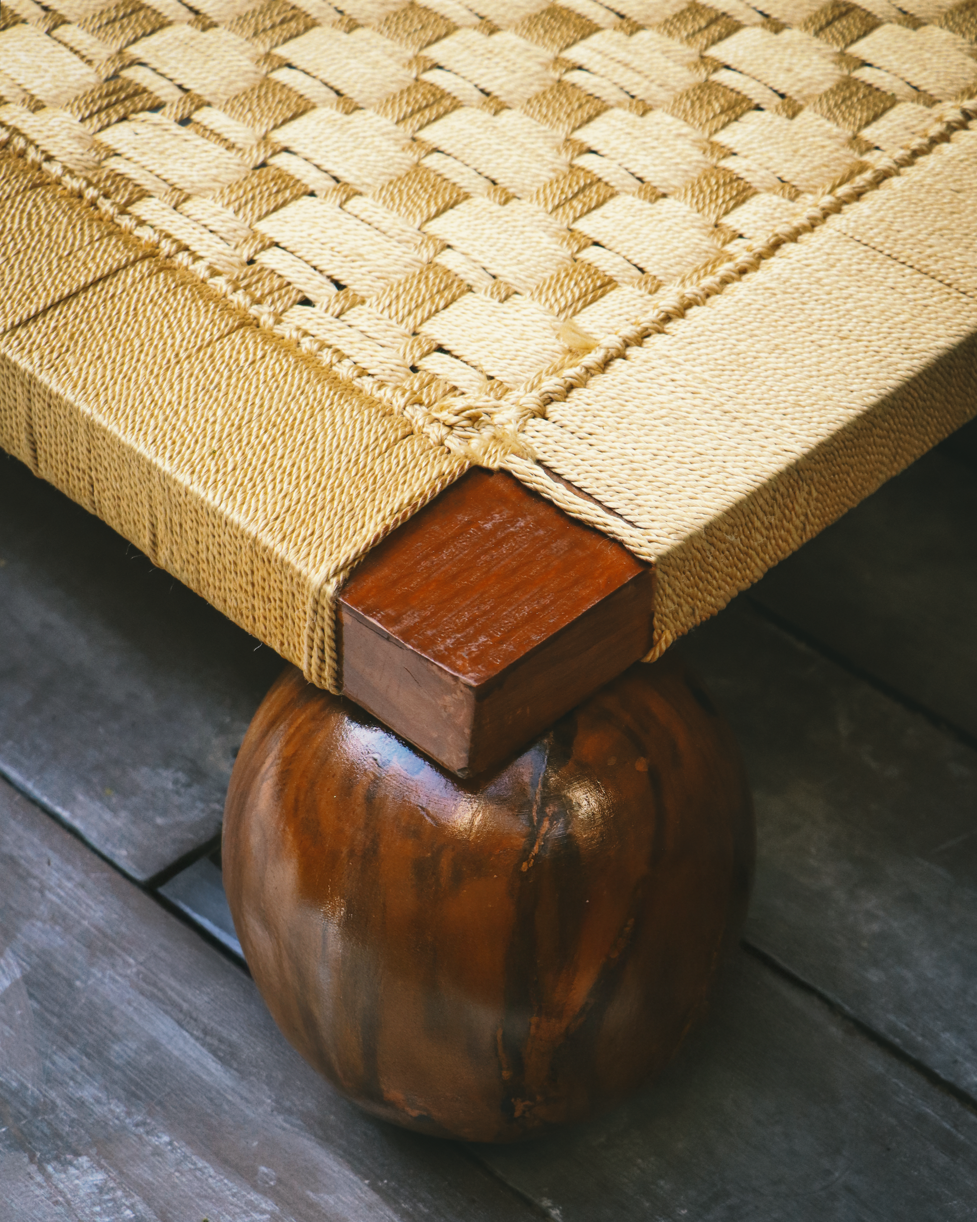 Elevate your living space with this handcrafted manji, a traditional Indian woven cot featuring intricate natural fiber weaving and robust wooden spherical legs. Designed for durability and comfort, its slanted backrest makes it perfect for lounging, napping, or simply relaxing in style. Whether placed indoors or outdoors, this artisanal piece adds cultural charm and earthy elegance to any décor.